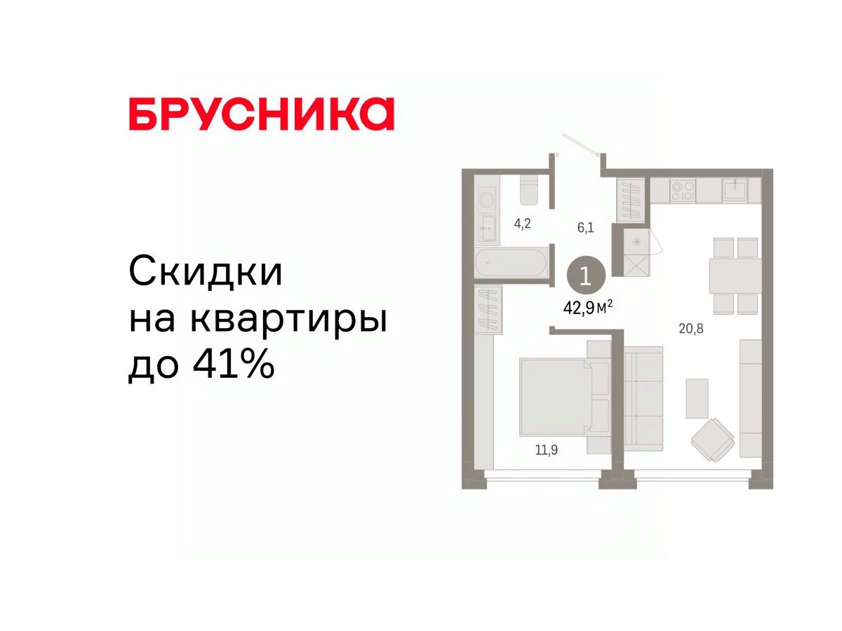 Квартира с кухней-гостиной и одной спальней в квартале "Нефть". Особенности планировки: предчистовая отделка.