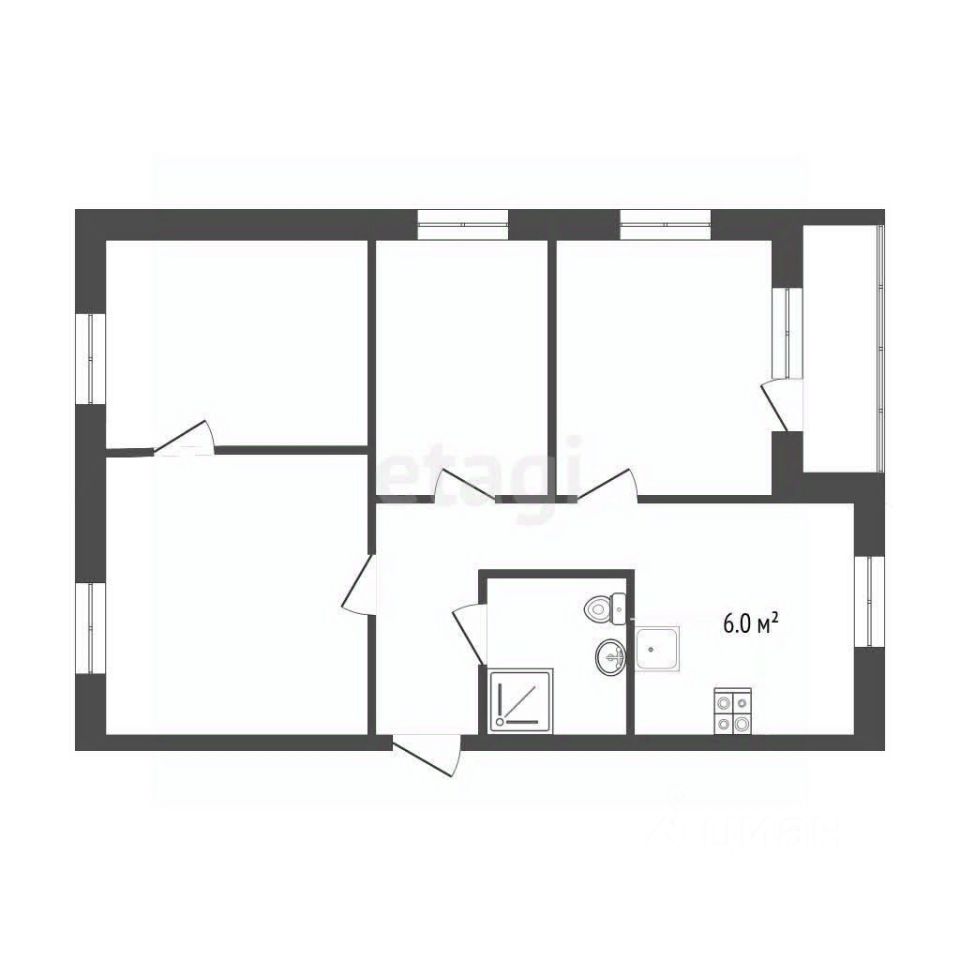 Общая площадь квартиры составляет 58м2. Однако в квартире есть 4 спальных комнаты, отдельная кухня, совмещенный санузел и балкон.