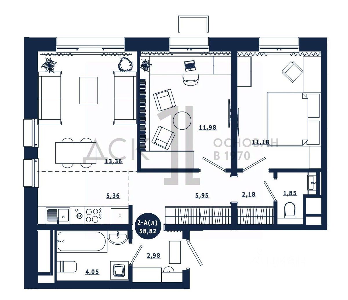 Продаётся 2-комнатная квартира в строящемся доме (Дом 1.1), срок сдачи: IV-кв. 2025, общей площадью 58.82 кв.м., на 14 этаже. Новый жилой комплекс "Крылов" от застройщика "ДСК-1" расположен по адресу: г. Сургут, улица Крылова.