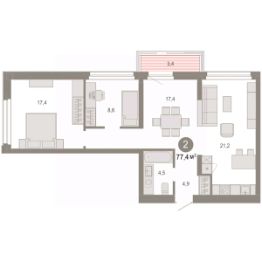 Квартира с кухней-гостиной и двумя спальнями в квартале "Нефть". Особенности планировки: балкон, предчистовая отделка, разнесённые спальни.