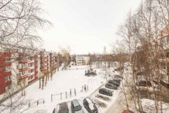 Комната- гостиная с остекленным балконом ( пл. 20 кв м ) выходят в тихий двор , 2 спальные комнаты ( пл.16 кв м, детская пл.9 кв м).
