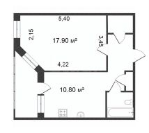 - Бывшая кухня теперь полноценная комната (спальня/кабинет). Все коммуникации зашиты, но доступны для обратного переноса.