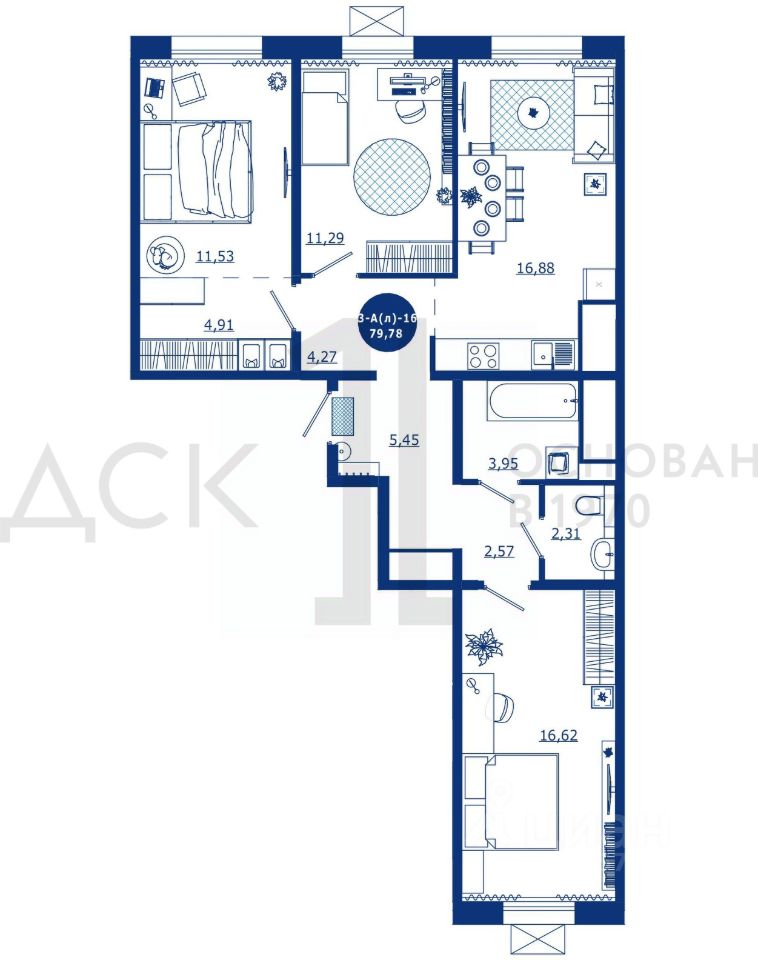 Продаётся 3-комнатная квартира в строящемся доме (Дом 2), срок сдачи: II-кв. 2026, общей площадью 79.78 кв.м., на 17 этаже. Новый микрорайон "За ручьем" имеет уникальное расположение: с одной стороны это — исторический центр Сургута, с другой — заповедная территория с нетронутой природой и чистейшим воздухом. Здесь будет все, что нужно для комфортной жизни: качественные, надежные дома, просторные паркинги, современный спортивный комплекс, детский сад, школа, кафе и живописные прогулочные зоны.