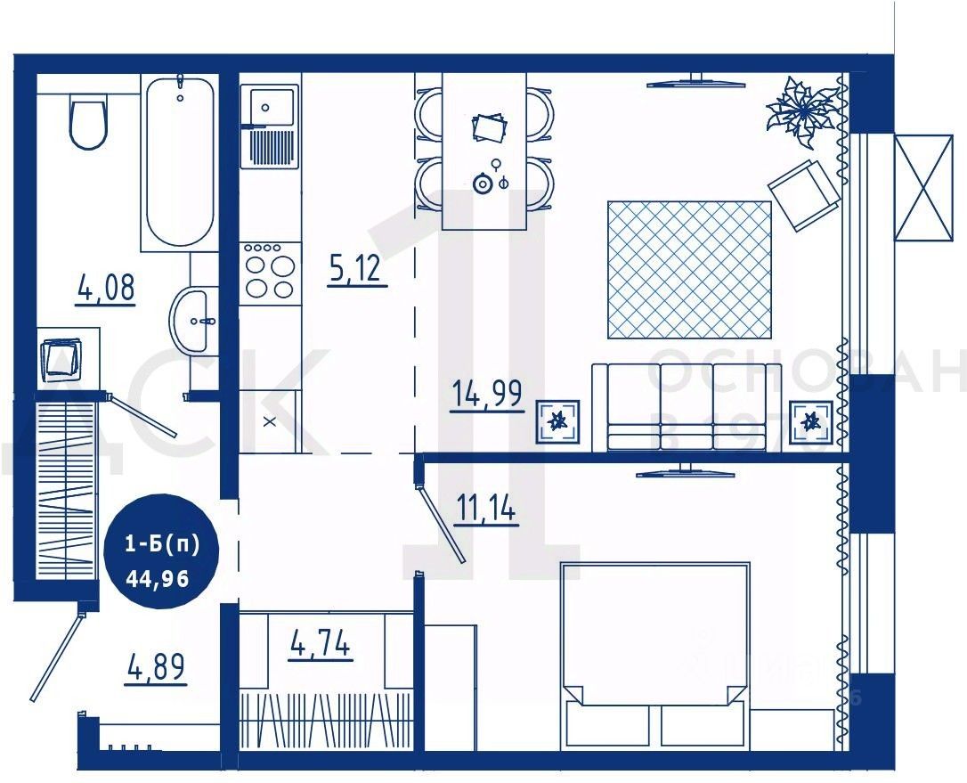 Общая площадь44,96 м²