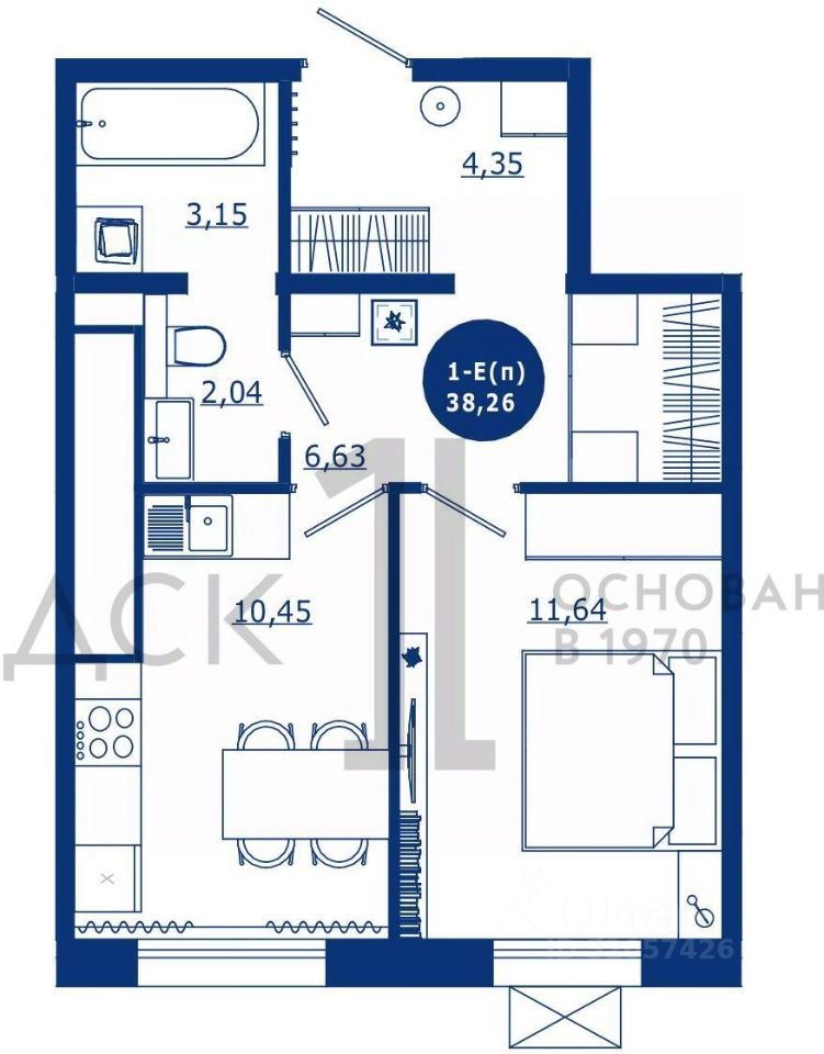 Общая площадь38,26 м²
