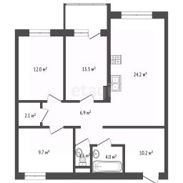 Просторная кухня-гостиная 24,1 м2.