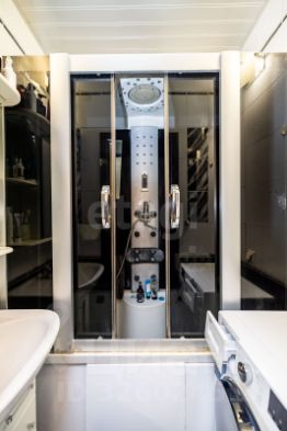 Ванная с туалетом раздельные, отделка плиткой. Установлена большая душевая кабина.