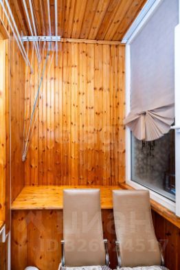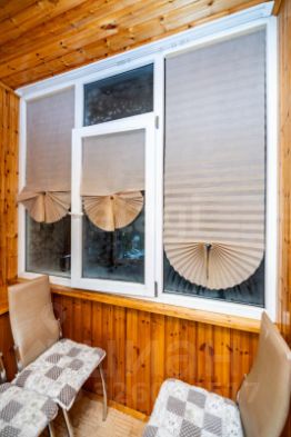 Балкон обшит деревом, окна пластиковые.