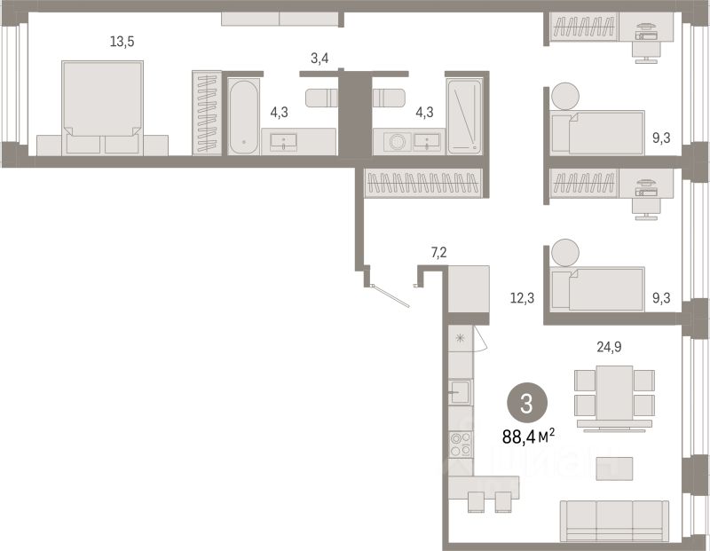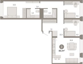 88,4 м²