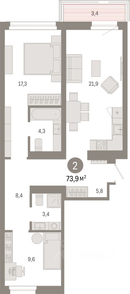 Общая площадь73,9 м²