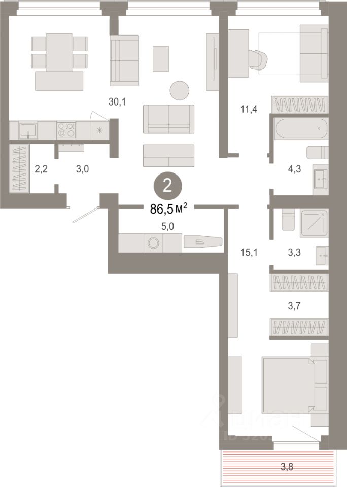86,5 м²