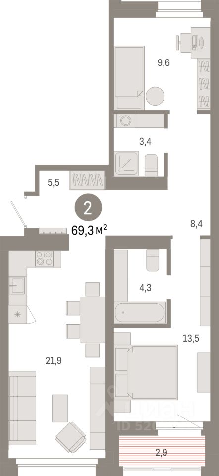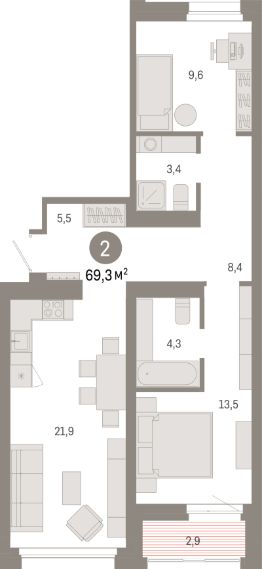 69,3 м²
