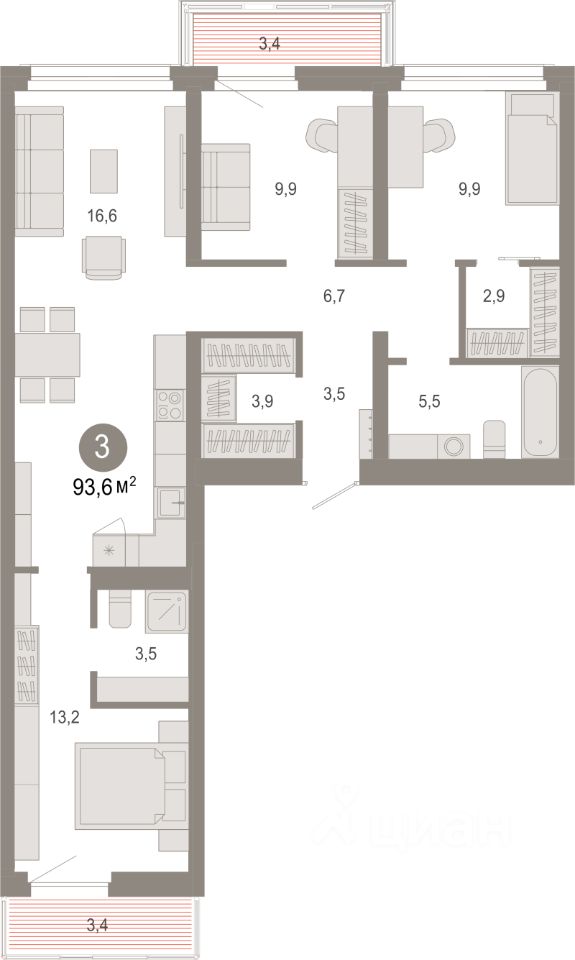 93,6 м²