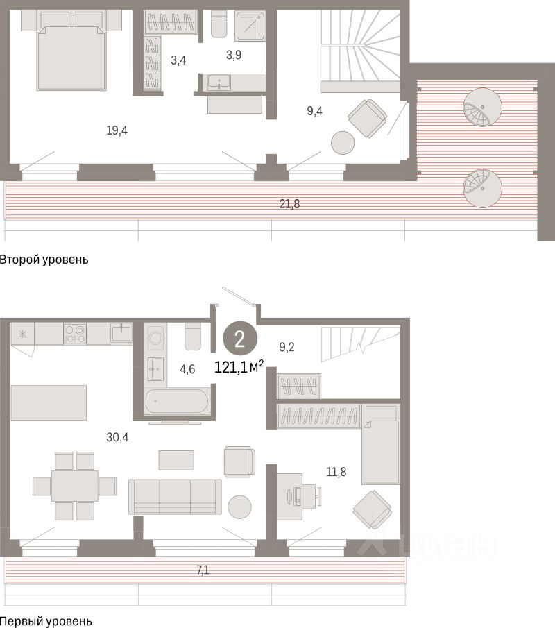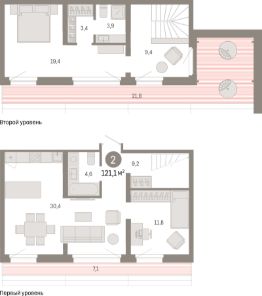121,1 м²