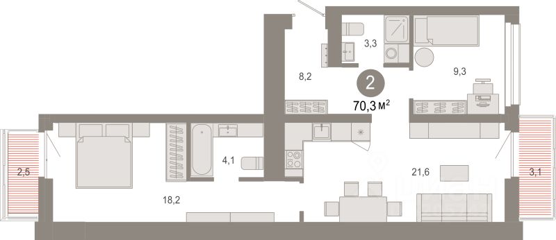 Продаётся 2-комнатная квартира в строящемся доме (НФТ1), срок сдачи: II-кв. 2027, общей площадью 70.3 кв.м., на 2 этаже. Новый жилой комплекс "по пр. Набережный" от застройщика "Брусника" расположен по адресу: г. Сургут, Набережный проспект.