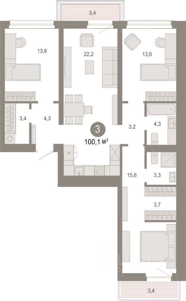 Продаётся 3-комнатная квартира в строящемся доме (НФТ1), срок сдачи: II-кв. 2027, общей площадью 100.1 кв.м., на 5 этаже. Новый жилой комплекс "по пр. Набережный" от застройщика "Брусника" расположен по адресу: г. Сургут, Набережный проспект.