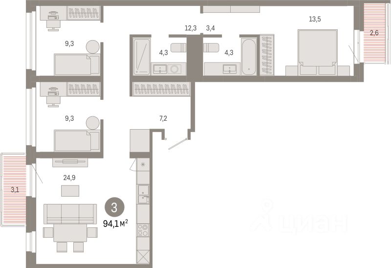 Общая площадь94,1 м²