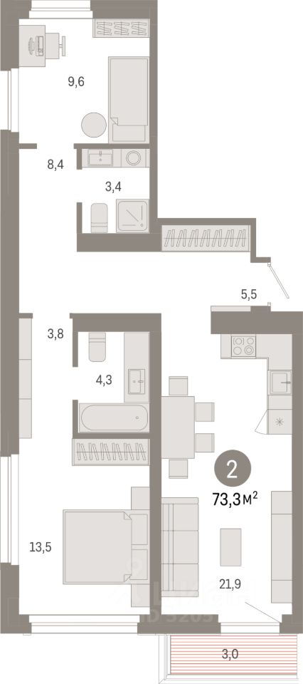 73,3 м²