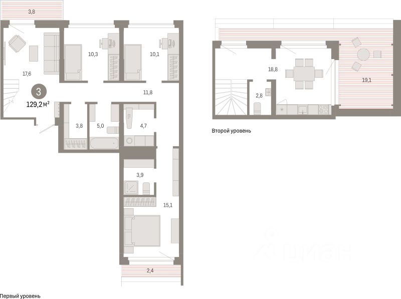 129,2 м²