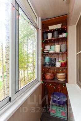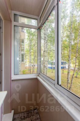 Светлая гостиная с выходом на застеклённый балкон (вид на зелёную зону)