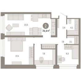 2-комн. квартира от застройщика с предчистовой отделкой в ЖК "Нефть" на 2 этаже. Общая площадь: 74.43 кв.м., жилая: 26.7 кв.м., площадь просторной кухни-гостиной: 23.5 кв.м. Квартира угловая, идеально подойдет любителям тишины и панорамных видов. В квартире один совмещенный санузел. Высота потолков 2.7 м.