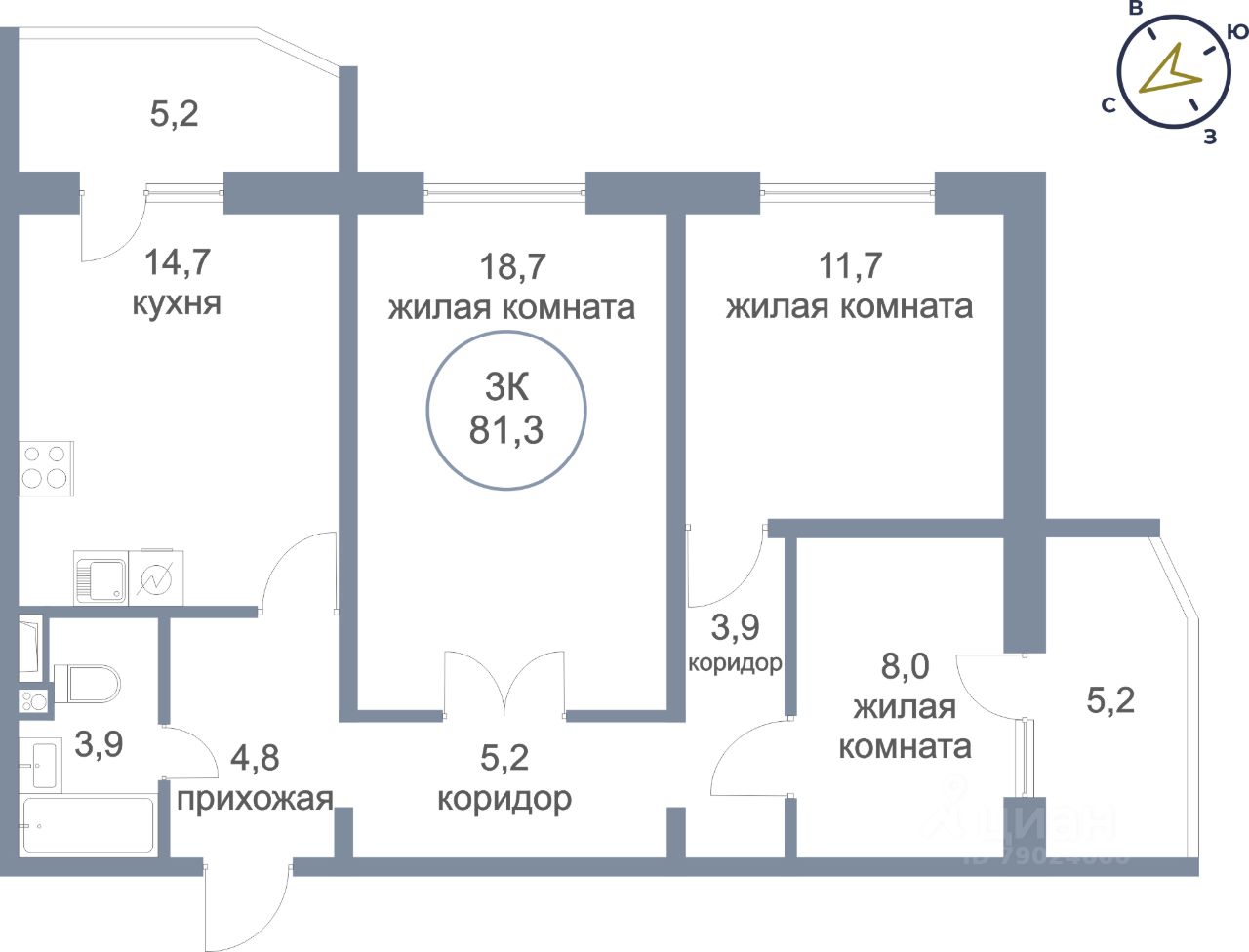 Общая площадь81,3 м²