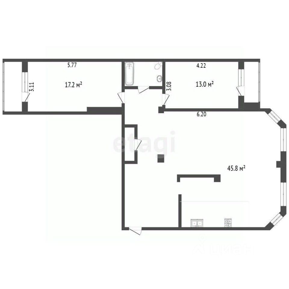 Ключевым преимуществом объекта является его продуманная планировка: просторная кухня-гостиная площадью 45 м² формирует комфортное общее пространство, в квартире также просторный коридор, 2 раздельные комнаты 13 м2 и 17м2, а наличие двух изолированных санузлов повышает уровень удобства для жильцов. Для автомобилистов в доме обустроен охраняемый подземный паркинг.