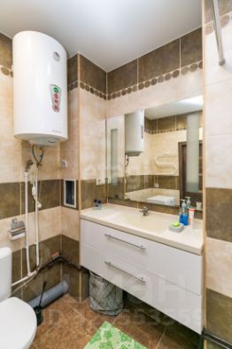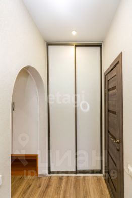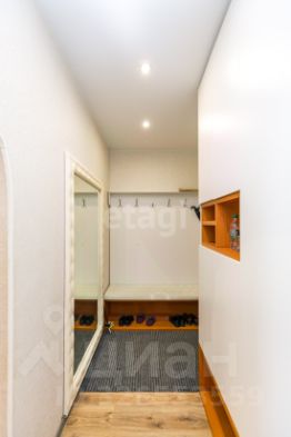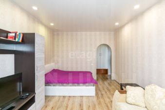 В квартире выполнен современный ремонт: стены оклеены обоями светлых тонов, на полу уложен ламинат, потолки натяжные. Санузел совмещен, полностью облицован кафельной плиткой. В коридоре установлен вместительный встроенный шкаф и прихожая зона.