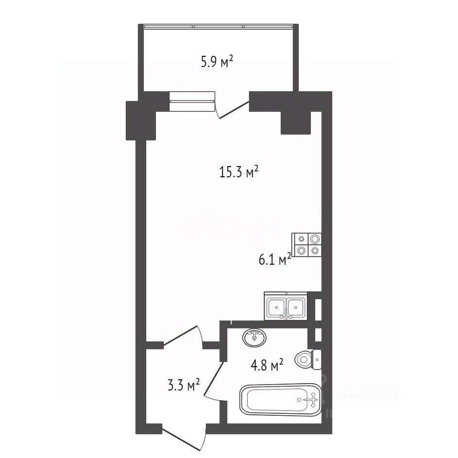 Площадь квартиры 29,6 м.кв. + утепленная лоджия 5,8 м. кв.
