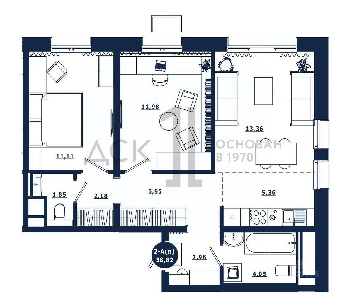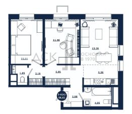 Продаётся 2-комнатная квартира в строящемся доме (Дом 1.1), срок сдачи: IV-кв. 2025, общей площадью 58.82 кв.м., на 13 этаже. Новый жилой комплекс "Крылов" от застройщика "ДСК-1" расположен по адресу: г. Сургут, улица Крылова.