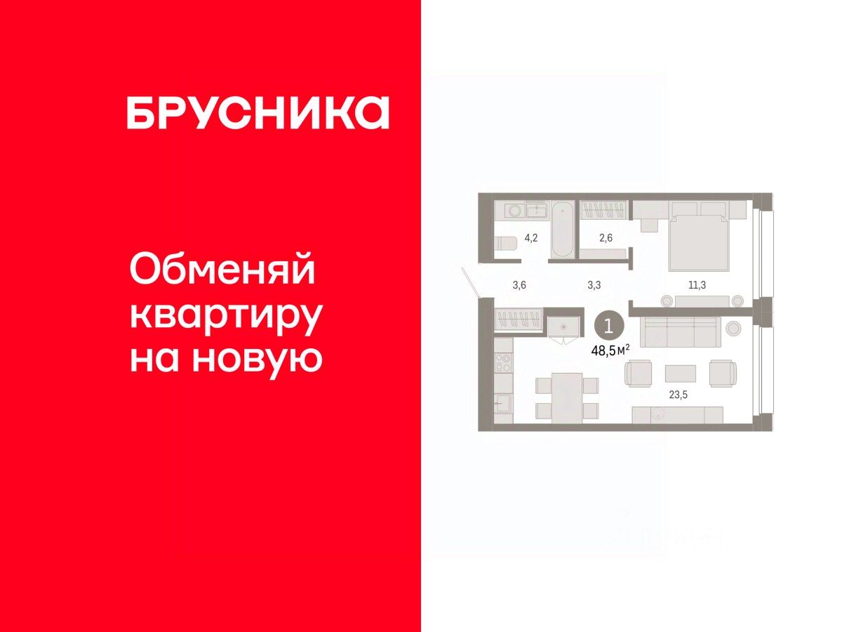 Квартира с кухней-гостиной и одной спальней в квартале "Нефть". Особенности планировки: предчистовая отделка.