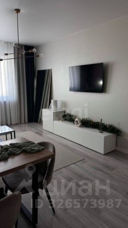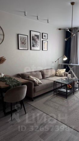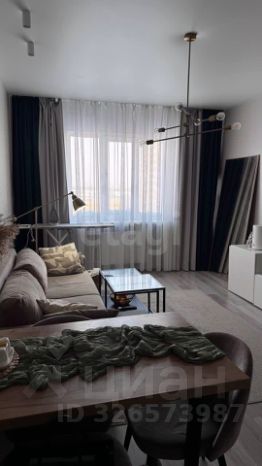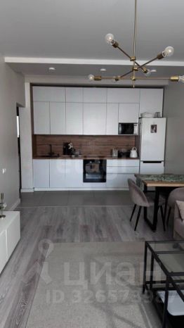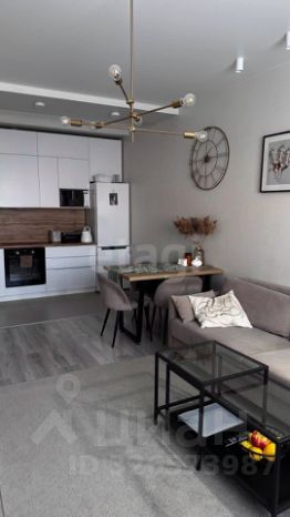 • Гостиная-кухня: Современный гарнитур со встроенной техникой (холодильник, духовка, СВЧ). Авторская зона отдыха с диваном и обеденной группой.