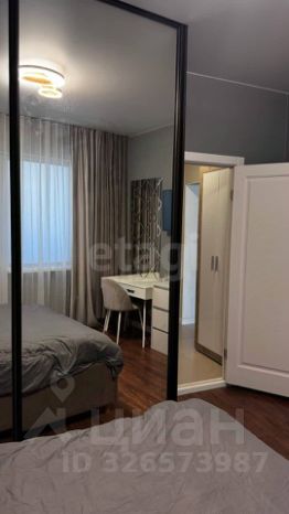 • Спальня-кабинет: Царская кровать, огромный зеркальный шкаф и продуманное рабочее место у окна.