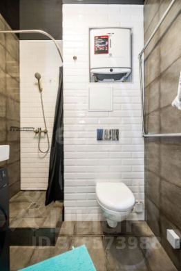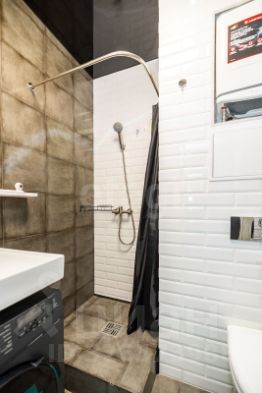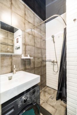 В санузле — стильная сантехника, водонагреватель и стиральная машина.