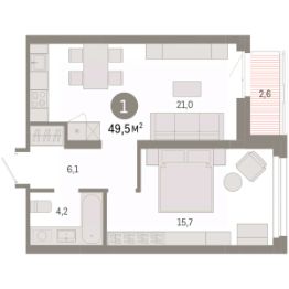 Однокомнатная квартира с предчистовой отделкой в ЖК "Нефть" на 5 этаже. Общая площадь: 49.5 кв.м., жилая: 11.9 кв.м., площадь просторной кухни-гостиной: 24.7 кв.м. Все окна выходят на одну сторону. В квартире одна лоджия, один совмещенный санузел. Высота потолков 2.7 м.