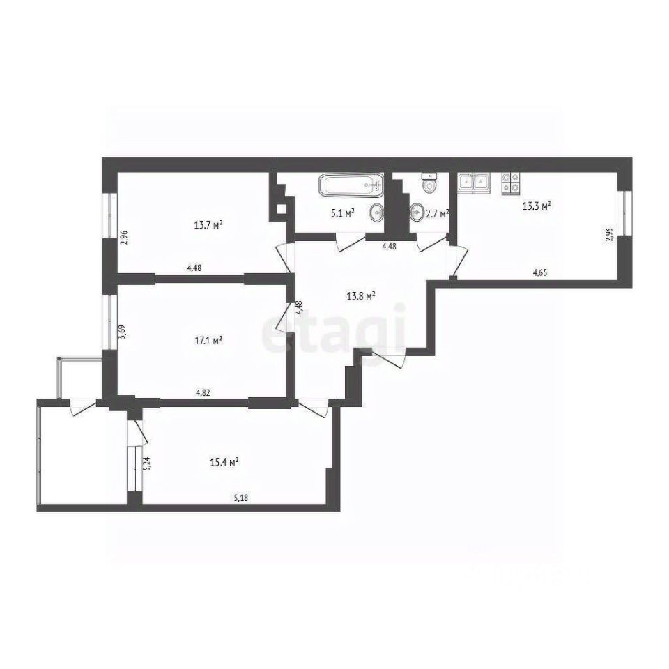 81 кв.м. + площадь балкона.