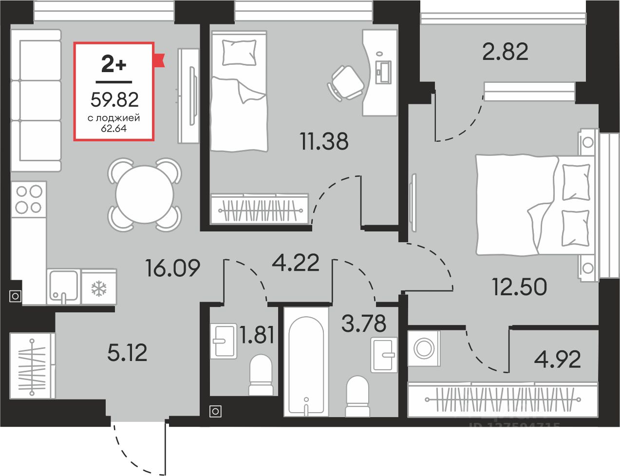 Общая площадь59,82 м²
