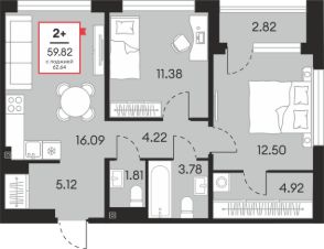 Общая площадь59,82 м²