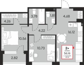Общая площадь56,16 м²