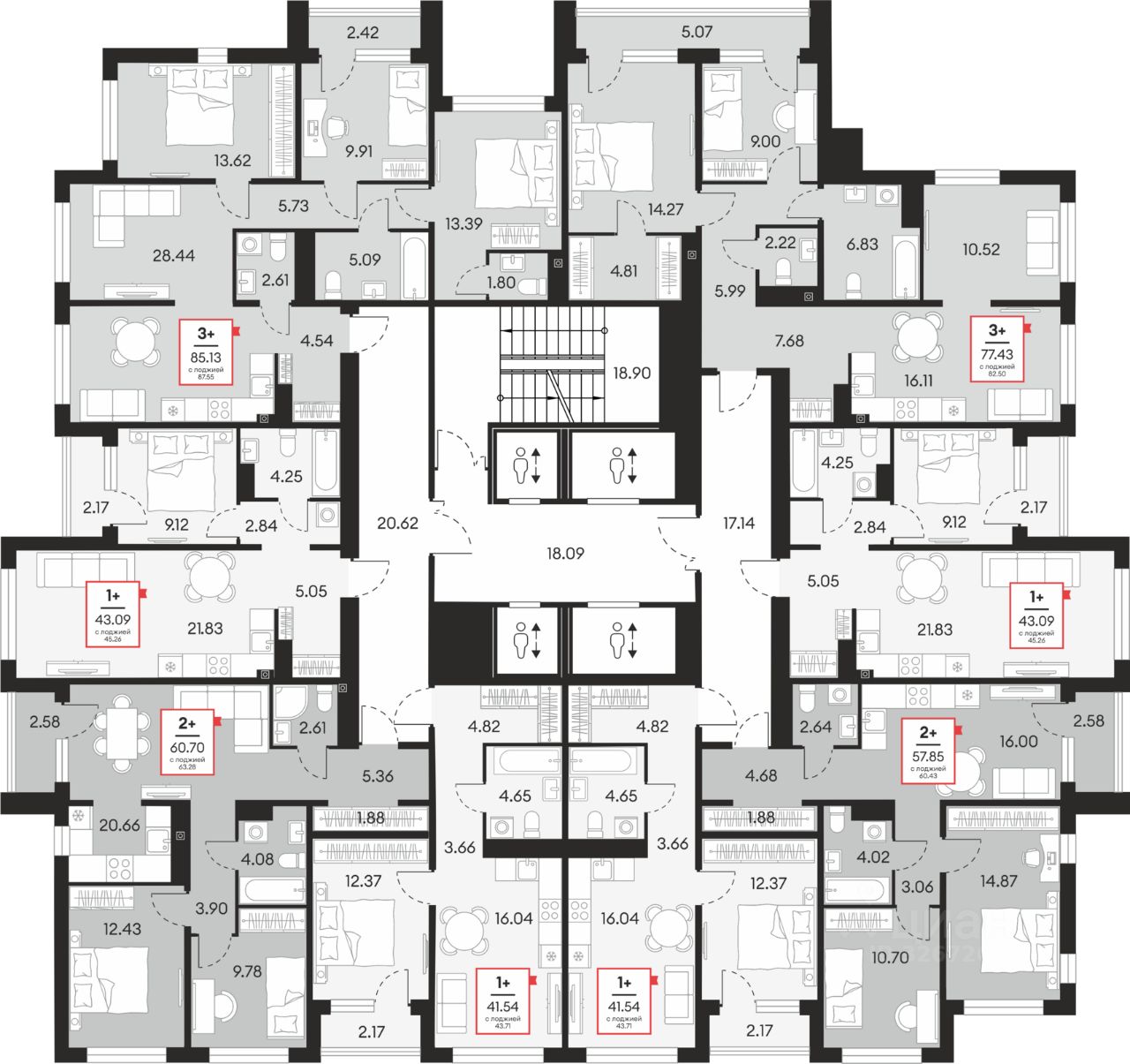 Общая площадь43,09 м²