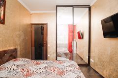 Кухня оснащена встроенной техникой (холодильник, варочная панель, вытяжка) и гарнитуром с фасадами МДФ. В комнатах предусмотрены системы хранения вещей изготовленные по индивидуальным размерам. Санузел раздельный, с современной сантехникой и керамической плиткой. Заменены радиаторы отопления, установлены счетчики учета воды и тепла.