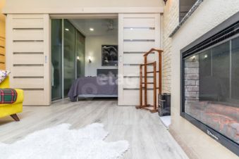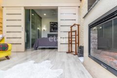 • В зоне гостиной — декоративный камин с функцией обогрева и мягкая подсветка, создающая атмосферу уюта.