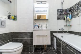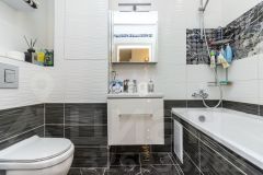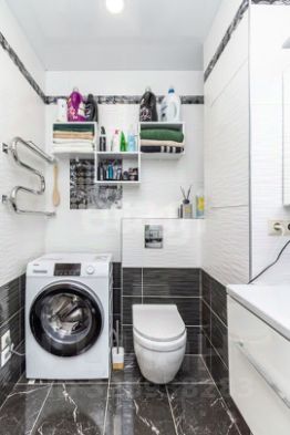 • Совмещённый санузел с современной инсталляцией и стиральной машиной.