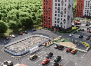 Дворовая территория поделена на шесть продуманных зон: детские площадки для разных возрастов, спортивная зона, хоккейная коробка, которая зимой превращается в каток, спокойные зоны отдыха и пространство "Притяжение" для встреч и общения. Это даёт понятный сценарий жизни во дворе: детям есть где играть, взрослым — где посидеть и позаниматься спортом, при этом потоки не пересекаются.