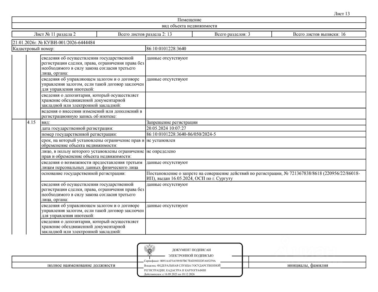 Должник: Cлепец С.В., собственник: Cлепец С.В. Лот: Жилое помещение (квартира), площадь 30,6 кв.м., кадастровый номер: 86:10:0101228:3640, г. Сургут, ул. Привокзальная, д. 4, кв. 66 (информация о зарегистрированных лицах отсутствует, задолженность за кап. ремонт на 08.12.2025 35 т.р.), н/ц: 1751700 р., з-к: 262755 р., код: 0001, рег. 26-38