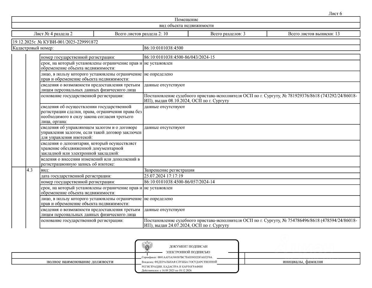 Должник: Чалина Г.Г., собственник: Чалина Г.Г., Чалин А.А., Чалин З.А. Лот: Жилое помещение (квартира), площадь 39,5 кв.м., кадастровый номер: 86:10:0101038:4500, г. Сургут, ул. Республики, д. 69, кв. 38 (информация о зарегистрированных лицах отсутствует, задолженность за кап. ремонт на 14.11.2025 89 т.р., сделка подлежит нотариальному удостоверению), н/ц: 3780800 р., з-к: 3780 р., код: 0014, рег. 26-41;