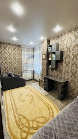 • Ремонт: качественный косметический ремонт, наливной пол выравненный, покрытие - линолеум и керамогранит, стены так же выровнены - обои, натяжные потолки.