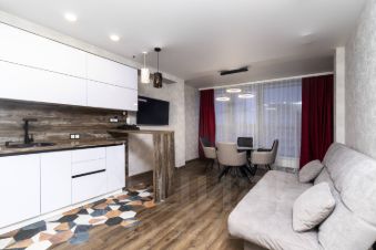 Интерьер квартиры выполнен с учетом современных тенденций дизайна. Высокие потолки 2,7 метра создают ощущение простора и света. В квартире есть все необходимое для комфортного проживания: встроенная мебель и бытовая техника высокого класса. Санузел совмещенный, оформлен в современном стиле и оснащен качественной сантехникой и небольшой сауной!