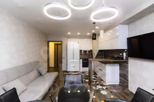 Продается стильная двухкомнатная квартира с дизайнерским ремонтом в современном доме 2016 года постройки. Общая площадь составляет 61,5 кв. м, а просторная кухня площадью 20 кв. м станет идеальным местом для семейных обедов или встреч с друзьями. Квартира расположена на 22-м этаже 25-этажного дома, поэтому из окон открывается панорамный вид на двор и окрестности!