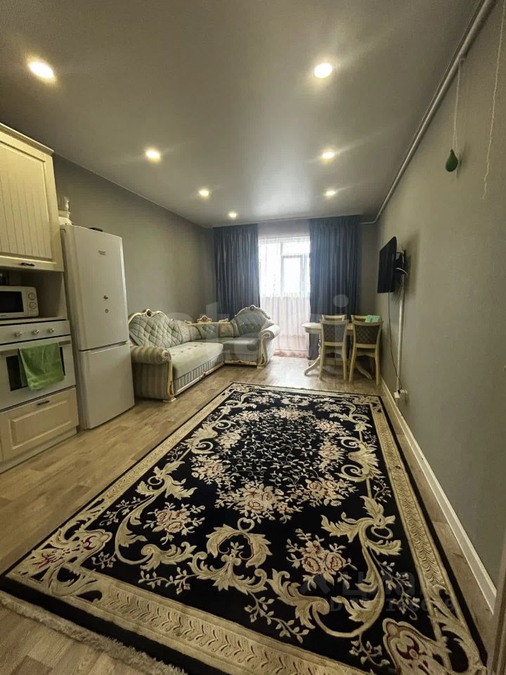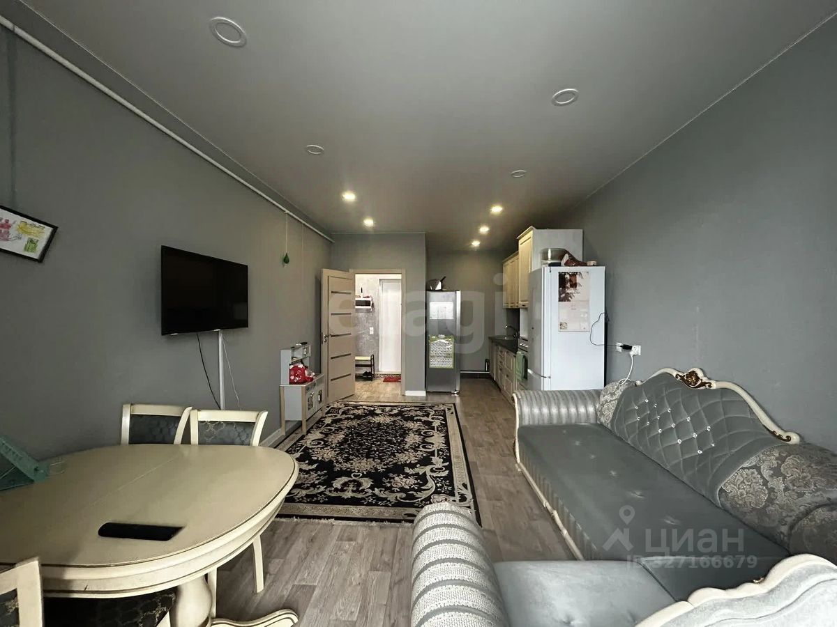 Однокомнатная квартира 43.8 кв.м. с ремонтом, сделана перепланировка образовав кухню-гостиную и отдельную спальню. Сан.узел совмещенный, облицован кафельной плиткой, полноразмерная ванная, место для установки стиральной и сушильной машины. Лоджия утепленная, сделан электрический теплый пол, дополнительно вынесена батарея отопления. Встроенная кухонная зона с техникой. Мебель и техника остается по договоренности.